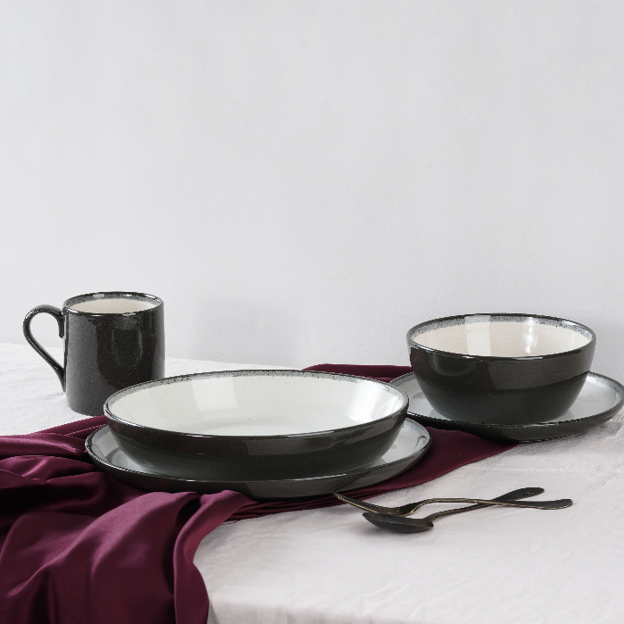 ZEN Hampers Dinner Set Piring Mangkuk Keramik Stoneware Grey isi 4 pcs + Box