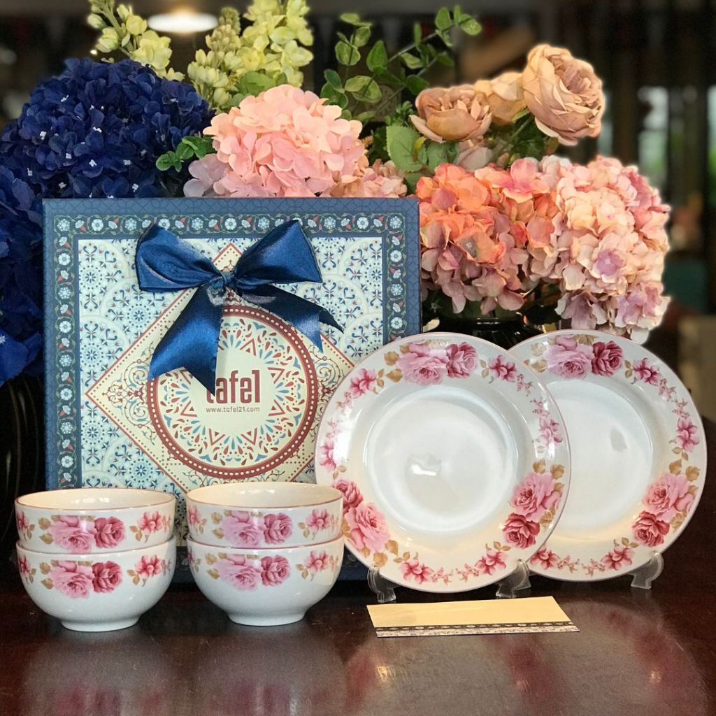 Hampers Piring Mangkok Keramik Pink Rossie isi 6