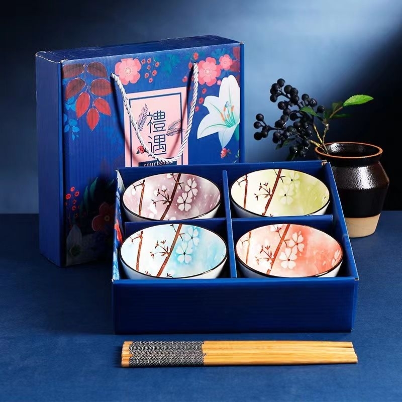 Set Mangkuk Keramik Hampers isi 4 bh FREE KARTU UCAPAN & BUBBLEWRAPP