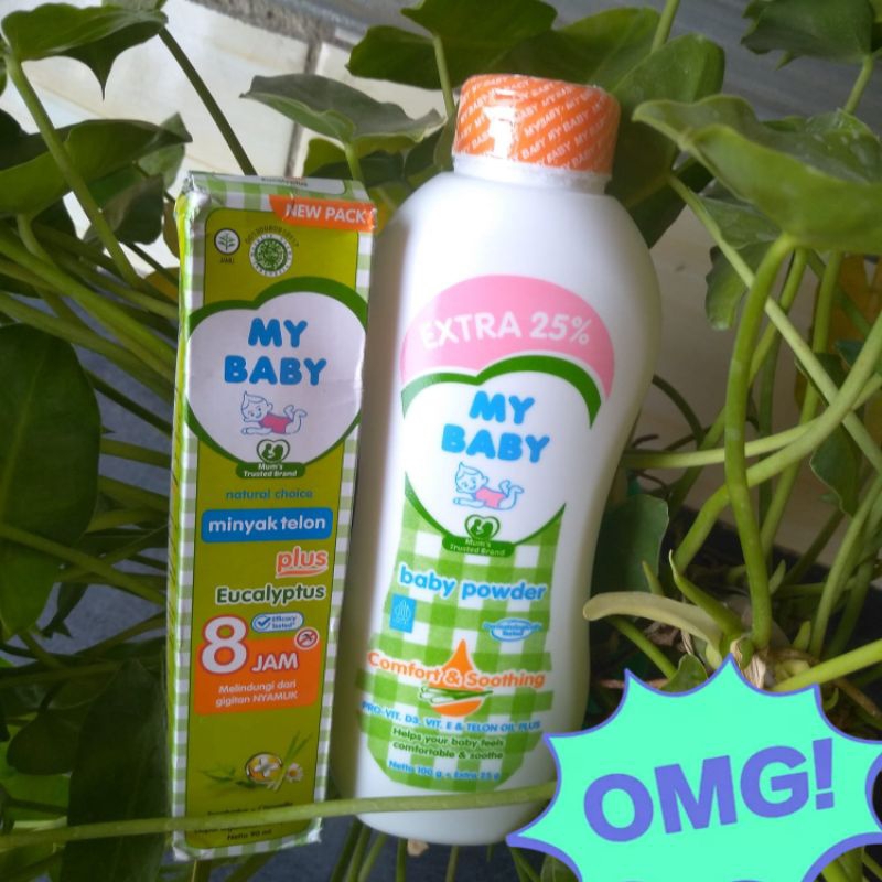 Paket hemat isi 2, Minyak telon Plus Eucalyptus 90 ml dan bedak bayi my baby 90 gr extra 23 gram (paket hijau )