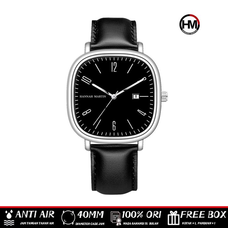 HANNAH MARTIN Jam Tangan Pria 100%Original Korean Model Terbaru Keren Quartz COWOK Kulit Anti Air Men Laki Arlo