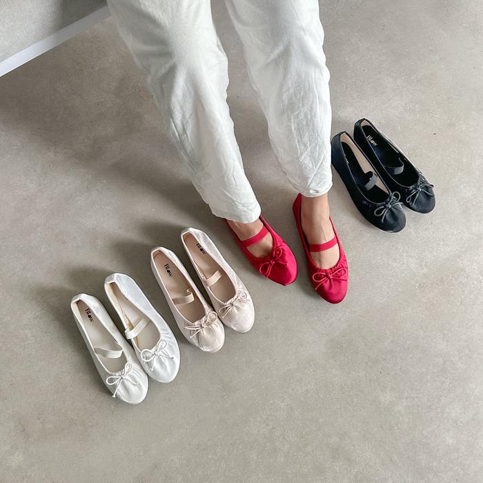 BLOW SELIA SATIN BALLERINA FLATS SHOES BLWF 0019 - BLACK SATIN, 36