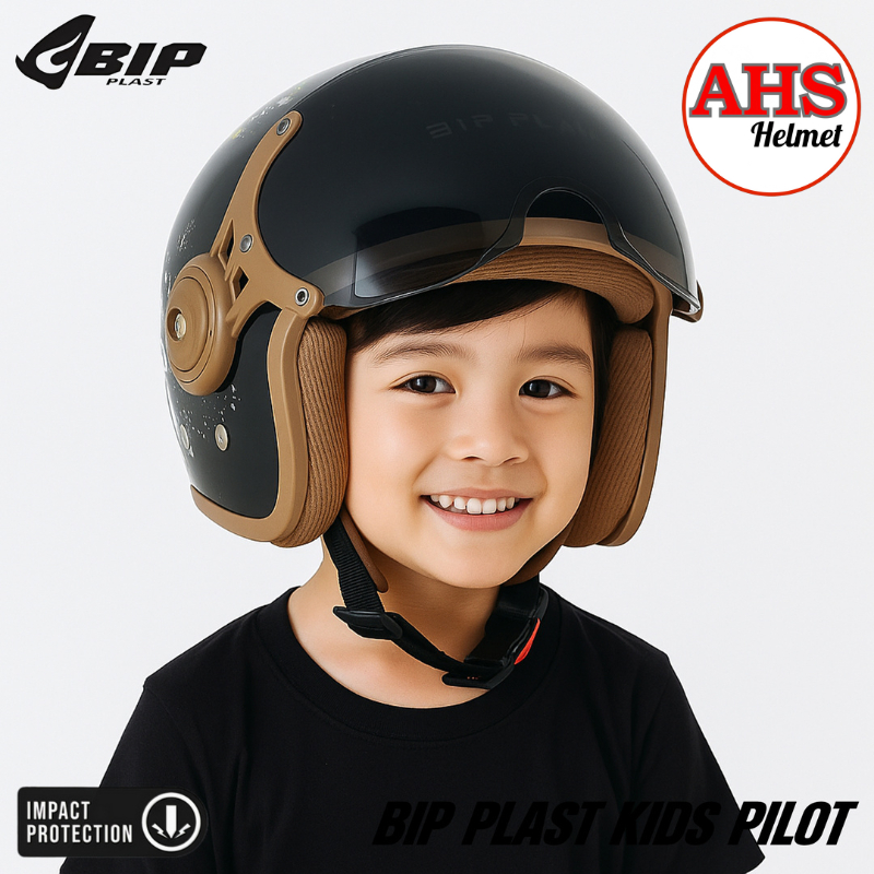 Helm BIP PLAST Kids Retro Pilot – Helm Anak Laki-Laki & Perempuan – SNI Motorcycle