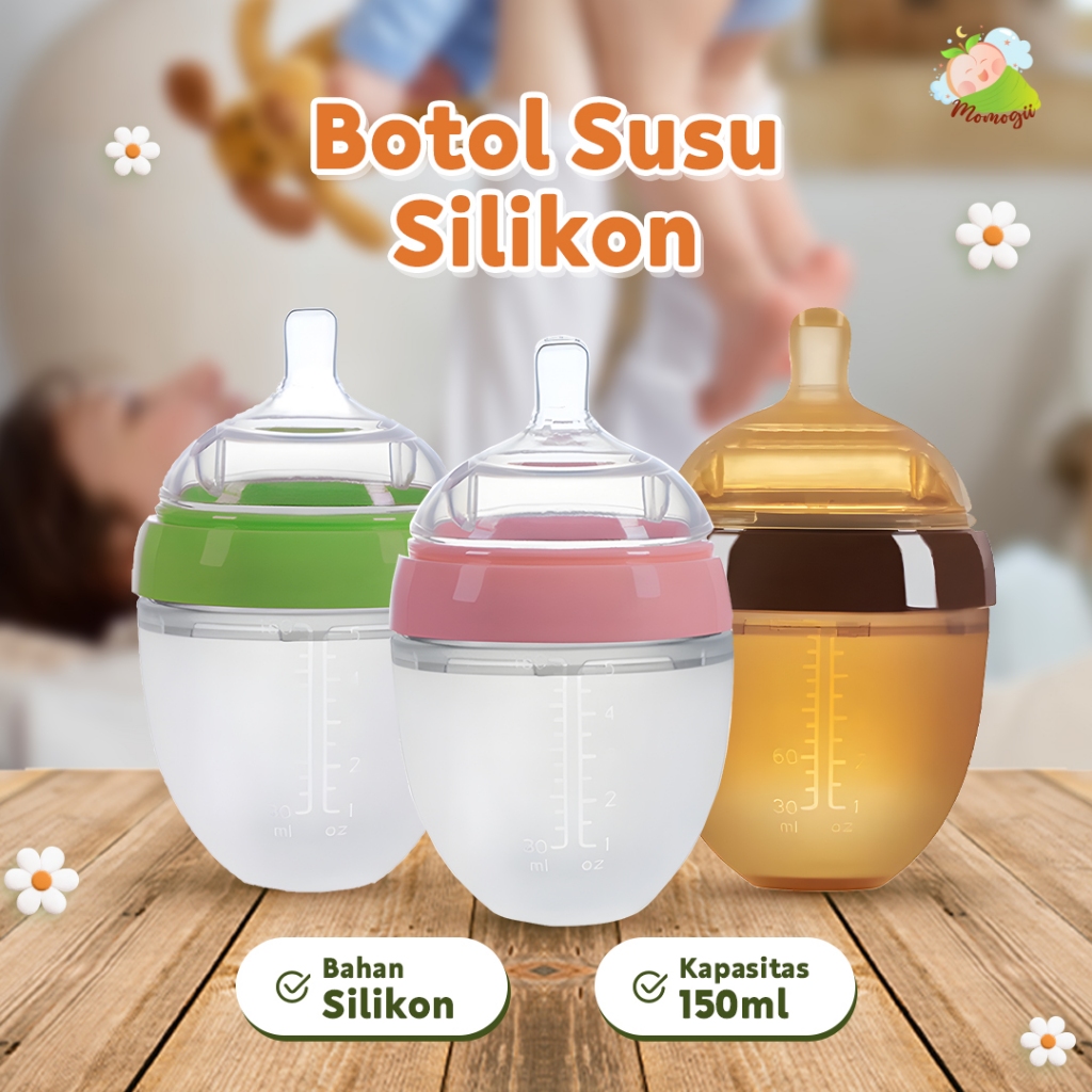 MOMOGII Premium Botol Dot Silikon Dengan 150ml / 250ml Botol Susu Bayi Wide Neck Silicone Food Grade Tahan Panas