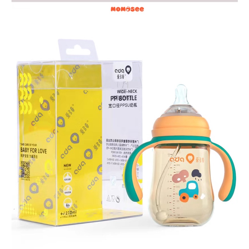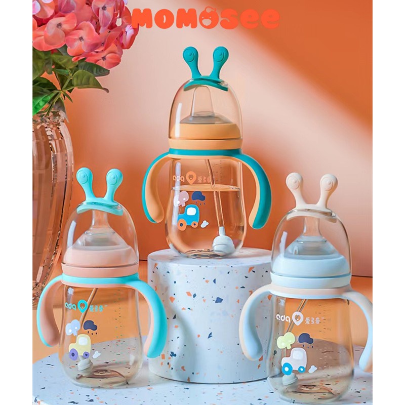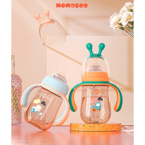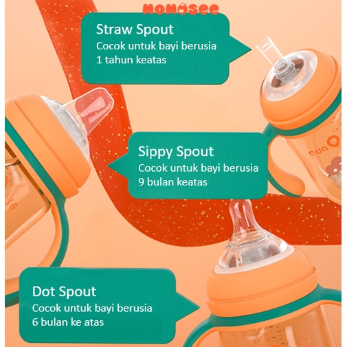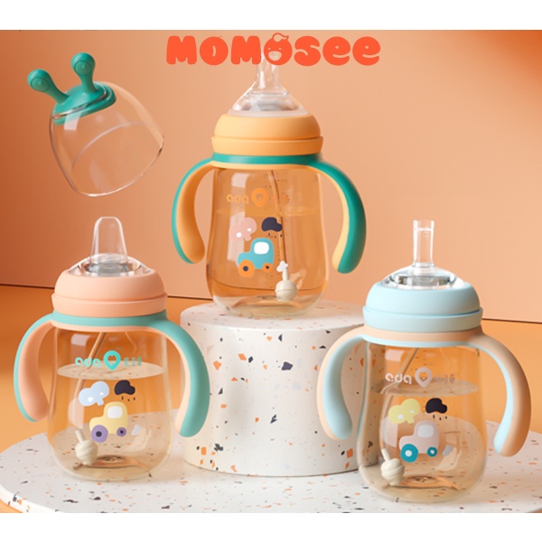 Momosee 3in1 Botol Susu Bayi Wide Neck PPSU Bottle Dot Sippy Straw 210ml 300ml BPA FREE BB01