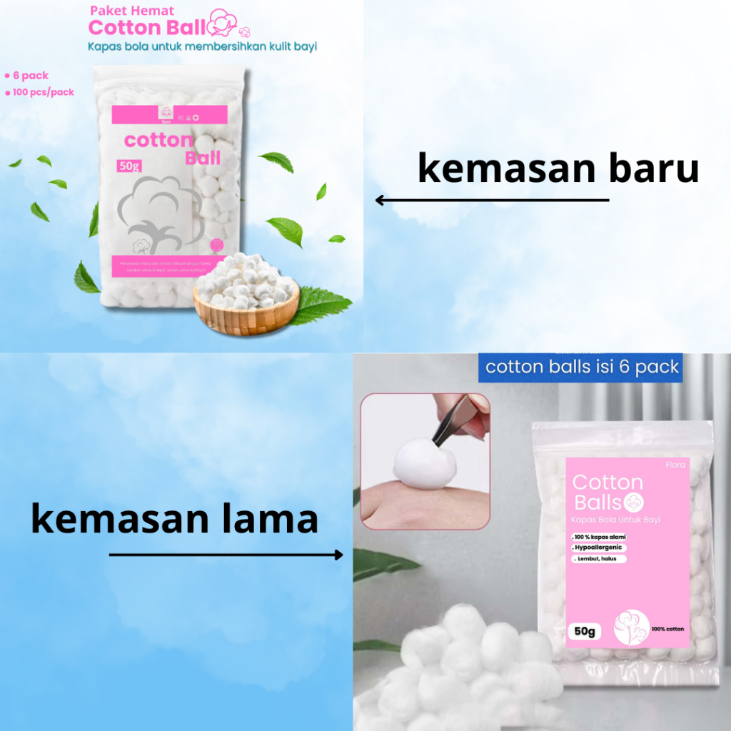 PAKET HEMAT - 6 PACK Kapas Bola Bayi Cotton Balls Isi 100 Balls 50gram