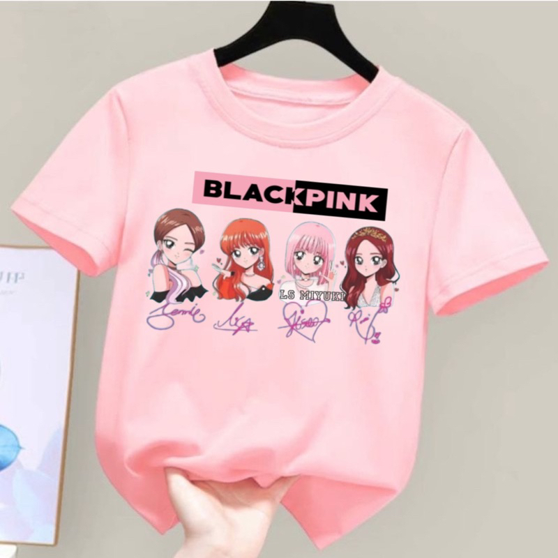 Kaos katun anak perempuan blk pink kekinian baju anak cewe cantik umur 1-16 tahun baju viral kaos oblong
