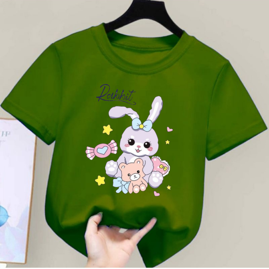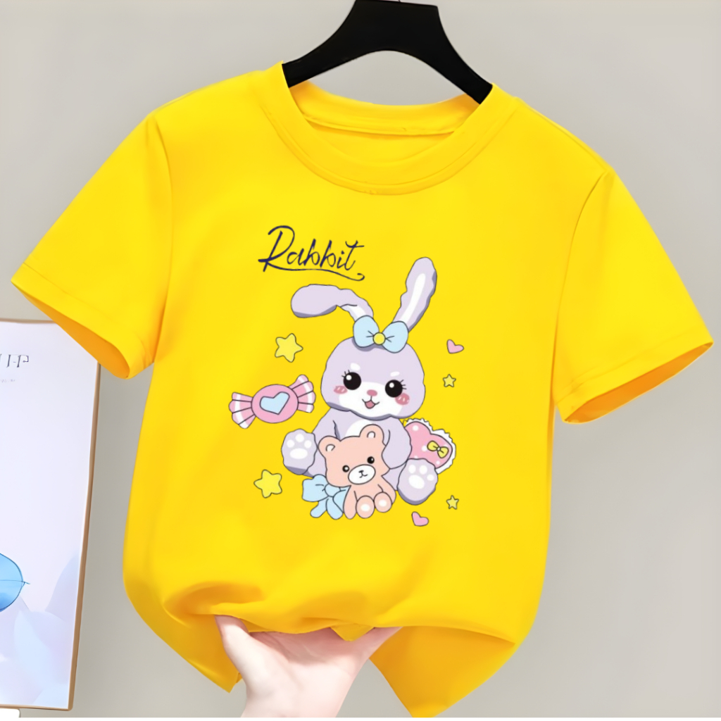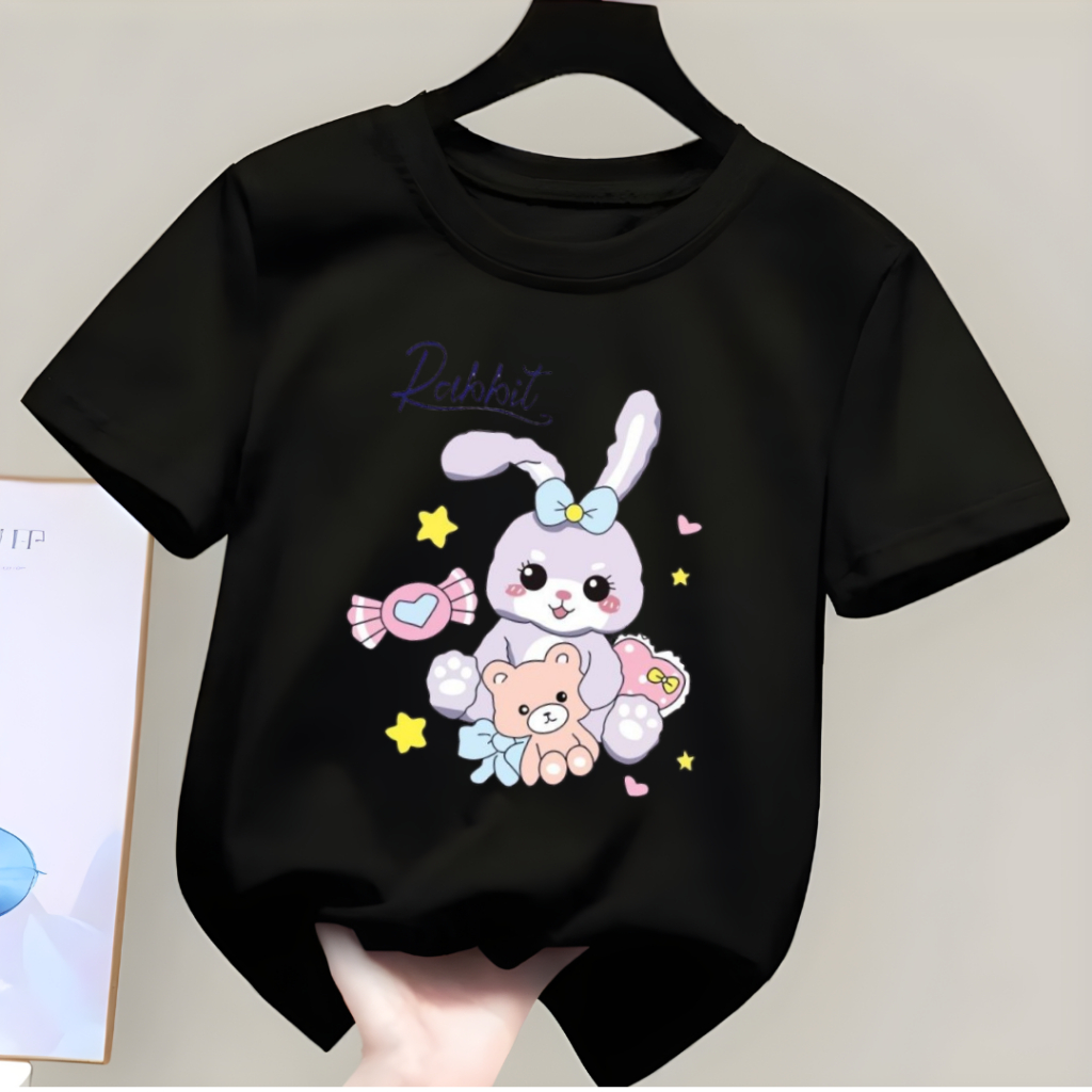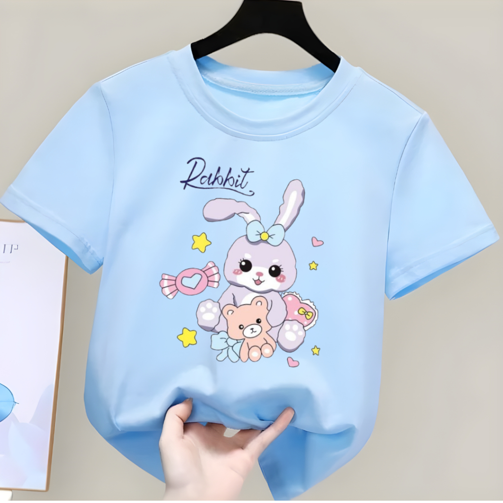 Kaos Anak Unisex Usia 2-12 Tahun Rabbit Teddy Atasan Anak Perempuan Laki Laki Oblong Distro Lengan Pendek