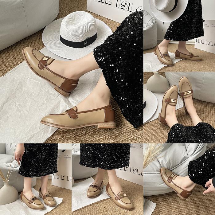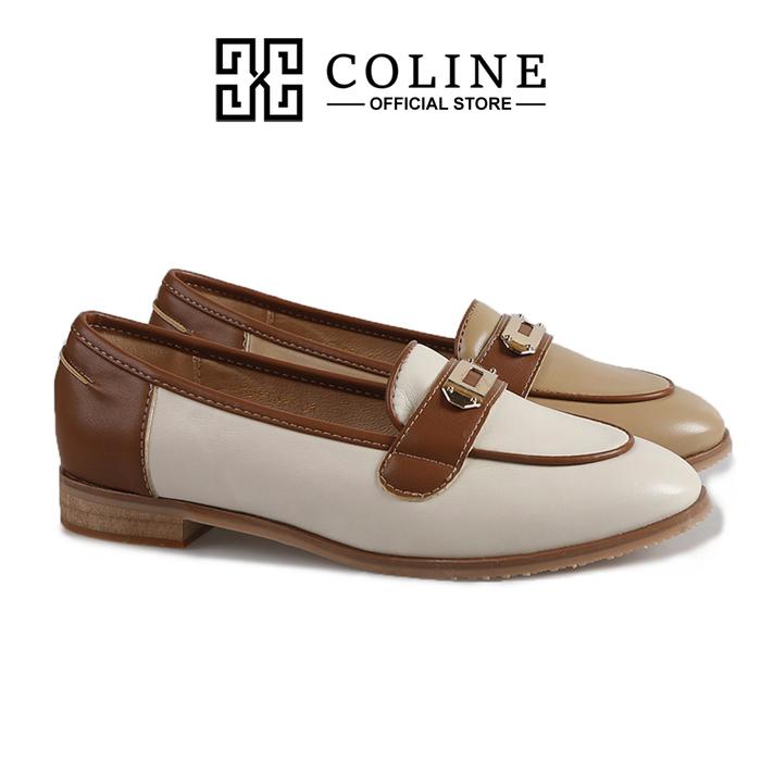 COLINE CLN-6848 FLATSHOES LOAFERS WANITA / SEPATU LOAFERS WANITA #C1181 KARET SHOES FLAT KERJA HITAM CEWEK PEREMPUAN - CLN-6848#BEIGE, 36