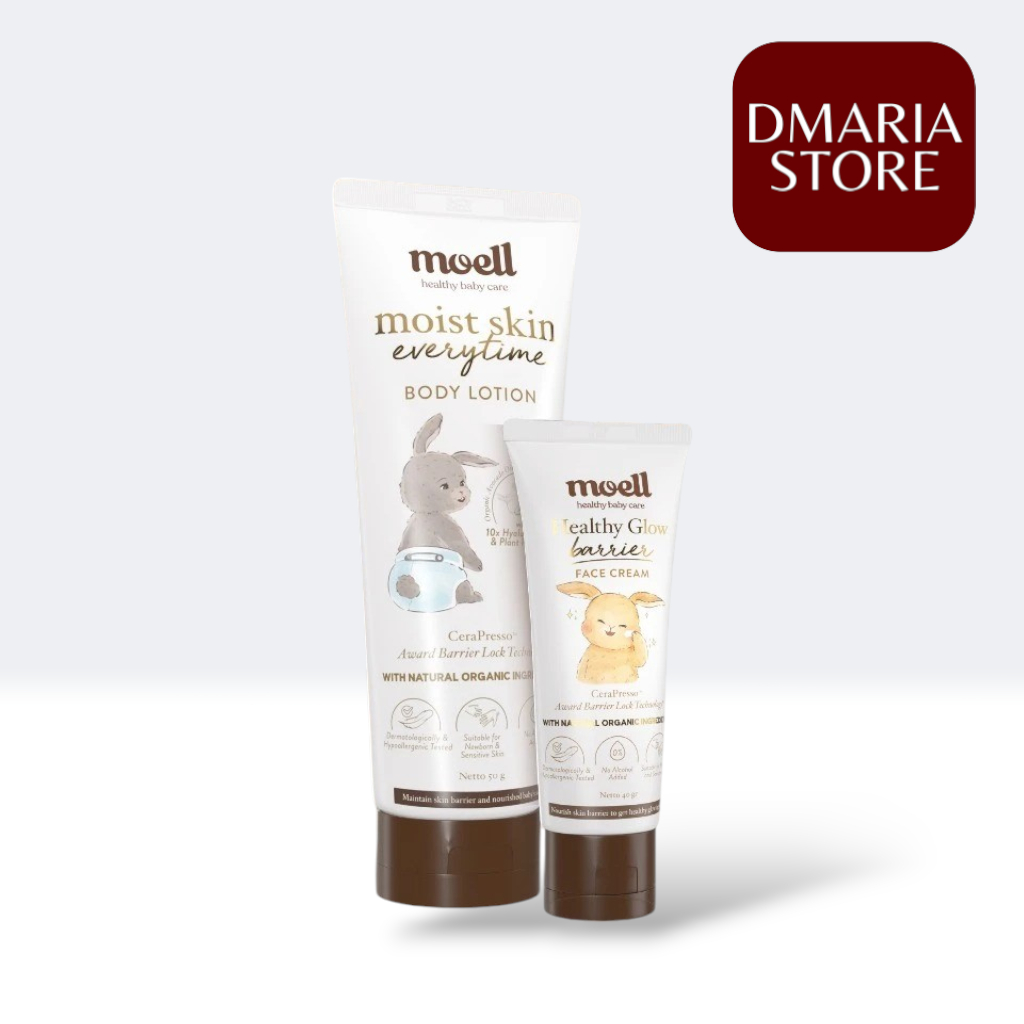 Moell Special Bundling Face Cream 40gr & Body Lotion 185gr - Skincare Baby - Natural Organic