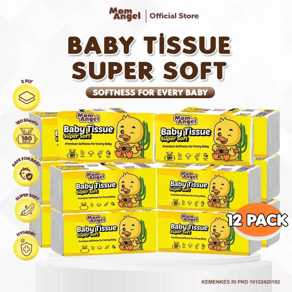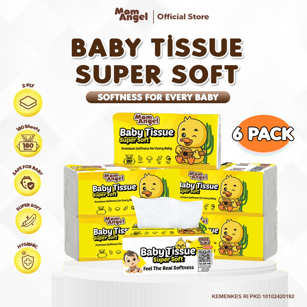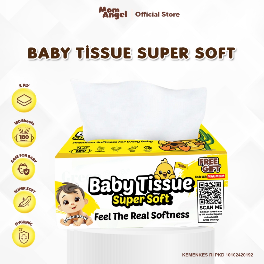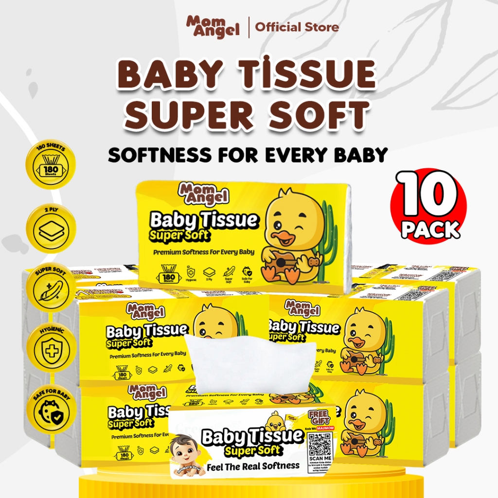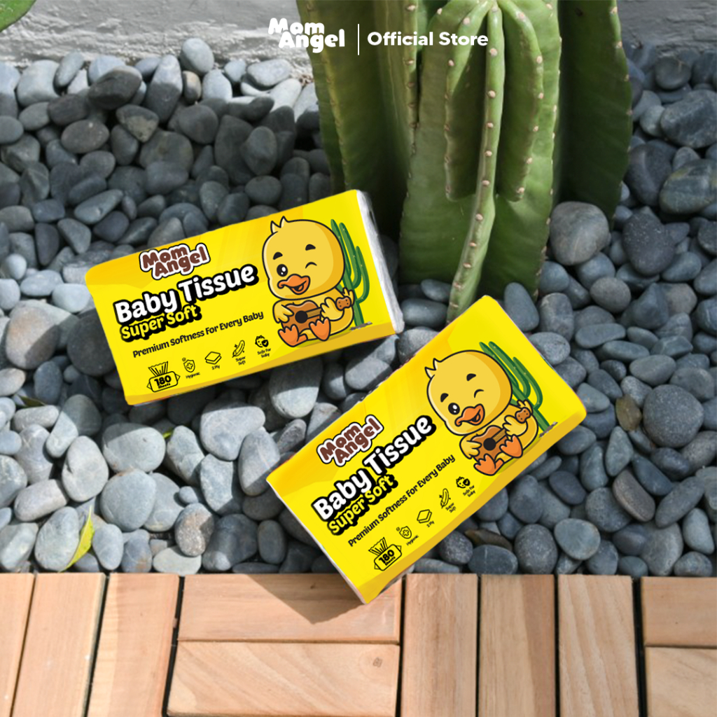 MOM ANGEL Tisu Bayi Tissue Baby Wipes Super Soft Facial Tissu 180 Sheets 2 Ply 250 Travel Pack Tisue Bayi Ganti Popok Pempers Diapers Tissue Basah Wajah Kecantikan
