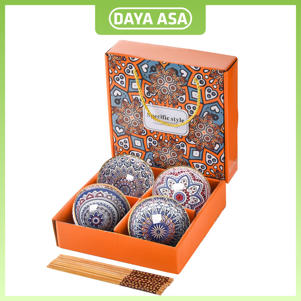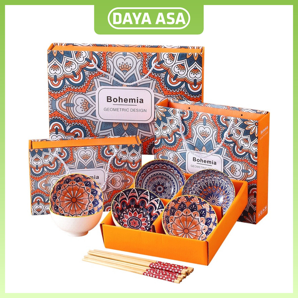 Hampers Kado Mangkok Set Porcelain isi 4/6, Alat Makan Korea Jepang Keramik Free Sumpit Kemasan Box