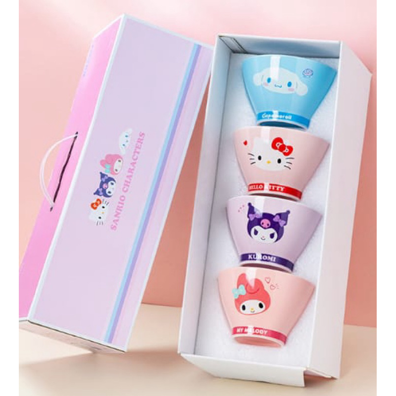 Set Mangkok Sanrio 4 pc dengan Gift Box/ Mangkok My melody Hello Kitty Cinamoroll Kuromi dengan Dus Mewah / Hampers Ulan