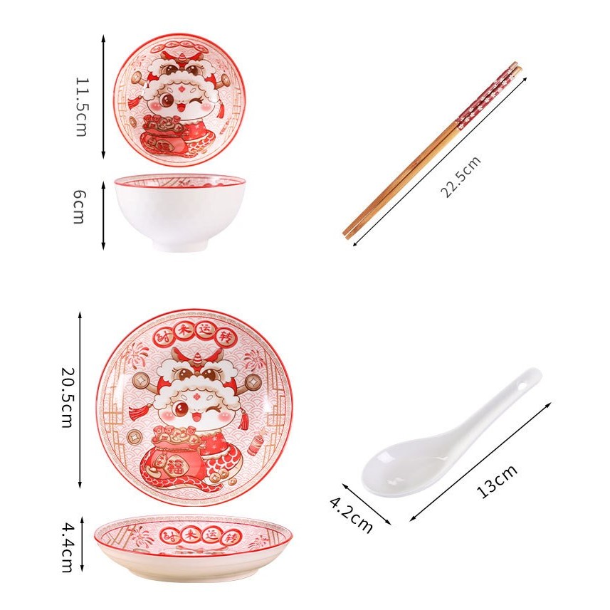 SK HOME DECOR - Mangkok Imlek Shio Ular 2025 Hampers CNY Tahun Ular Snake Bowl Set Piring Makan Mangkuk cihinese new yea