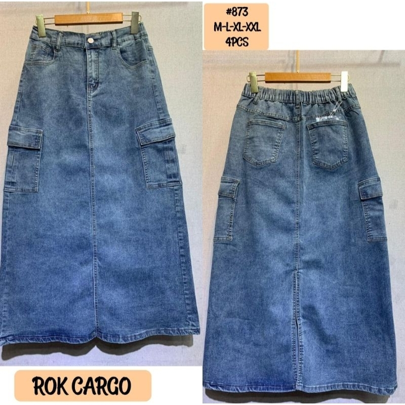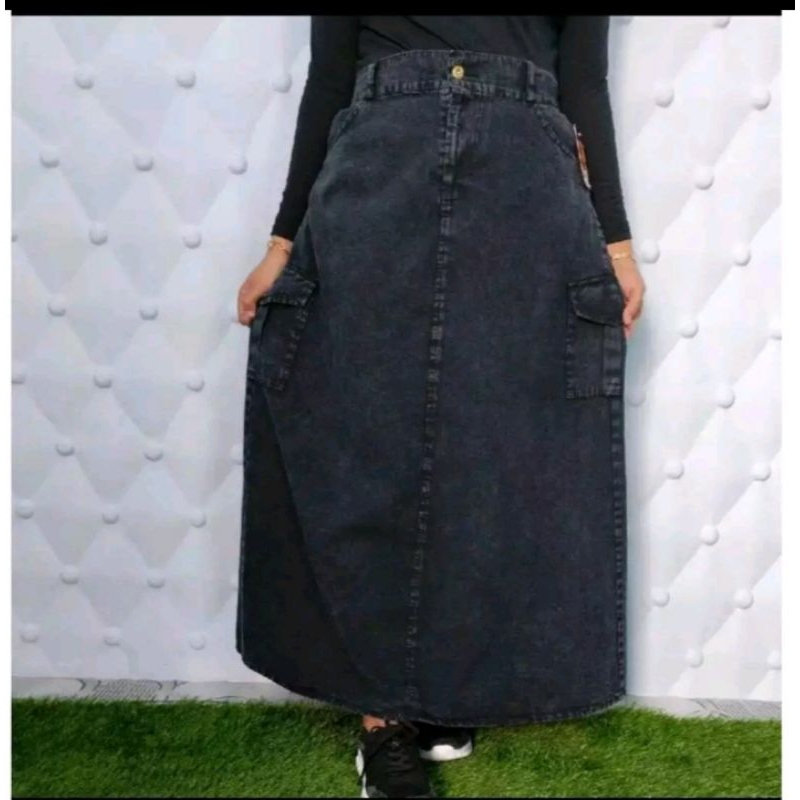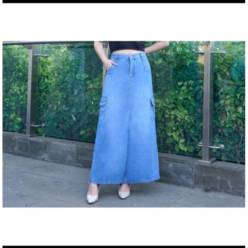 Rok Cargo jeans Highwaist panjang wanita Premium-Rok Cargo Highwaist kekinian