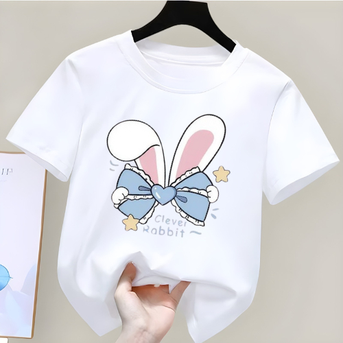 Kaos Anak Unisex Usia 2-12 Tahun Telinga Kelinci Oblong Distro Lengan Pendek Tshirt Kids Dalaman