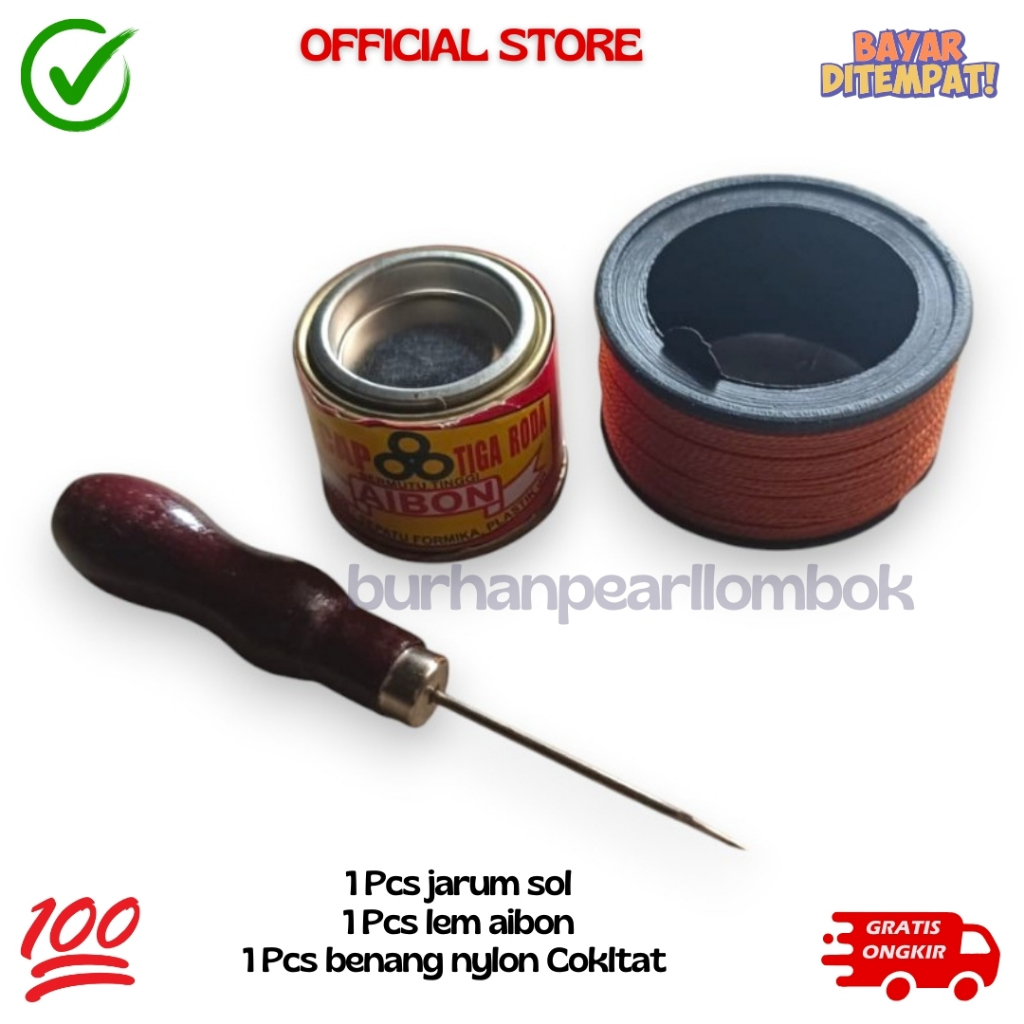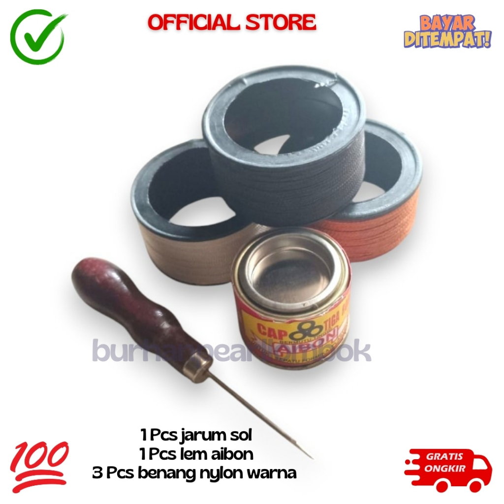 PAKET BENANG NILON SOL SEPATU + JARUM SOL SEPATU ORIGINAL + GUNTING BENANG + LEM AIBON B