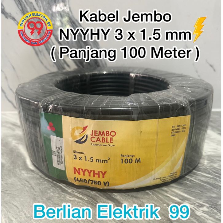 kabel jembo NYYHY 3x1,5mm(1roll 100meter)JEMBO NYYHY 3X1,5MM HITAM SERABUT