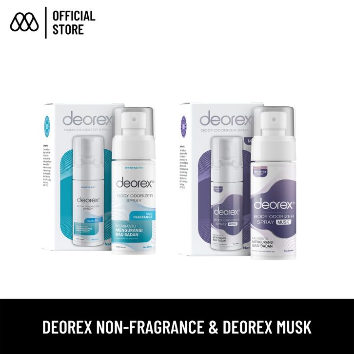 Deodorant Bundling 2pc All-Day Comfort Deorex Body Odorizer Non Fragrance dan Musk Masking Fragrance Spray 60ml Penggan