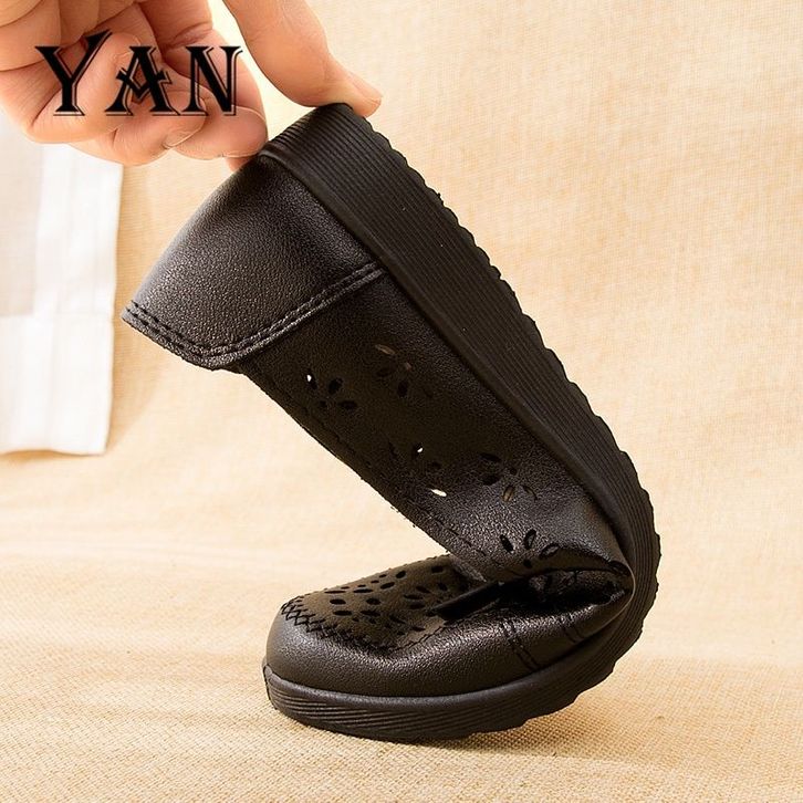 YAN Sepatu Flat Shoes Wanita Kulit Sepatu Slip On Terbaru Sepatu Kantor Nyaman Bernapas