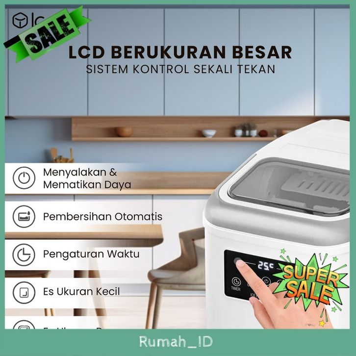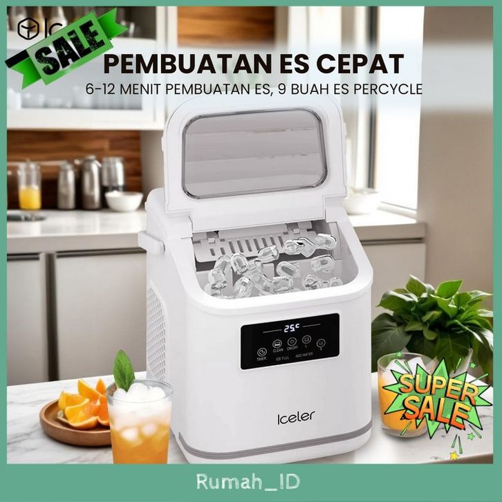 Iceler Mesin Es Digital Kontrol/ Touch Screen Setting Timer ON/OFF/Automatic Cleaning Home Ice Maker