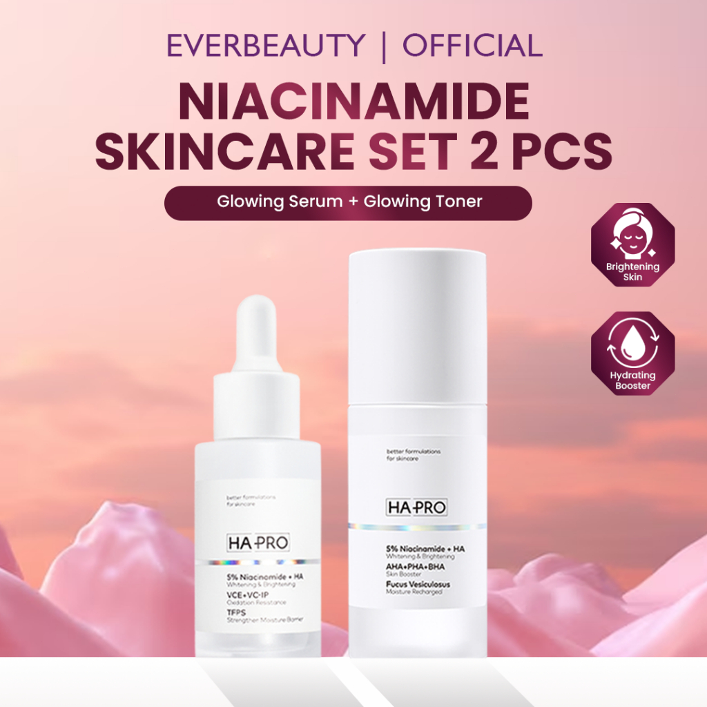 HA PRO Bundling Glow Series 2pcs | Whitening Toner 80ml + Whitening Serum Essence 30ml | Paket Skincare Pencerah
