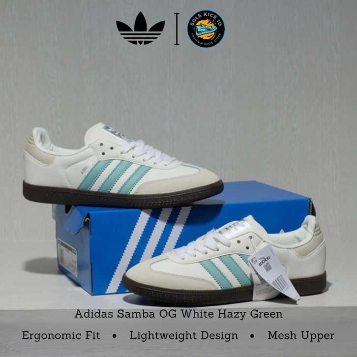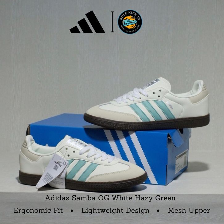 Sepatu Sneakers Pria Wanita Adidas Samba OG White Hazy Green Premium Import Quality