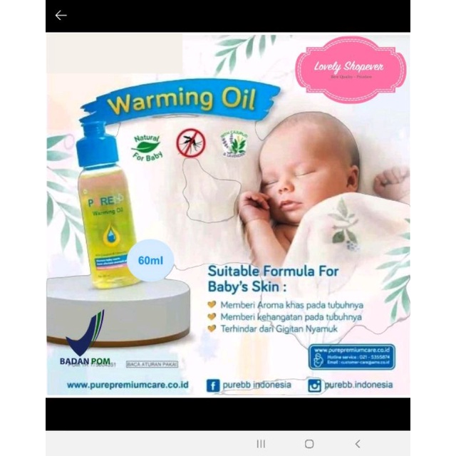 Pure BB Baby Warming Oil with Cajuputi dan Lavender 60 ml / Warming Oil Pure Baby