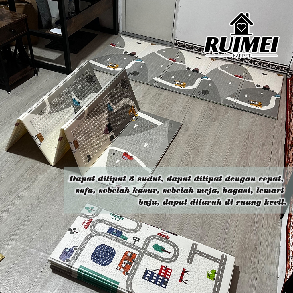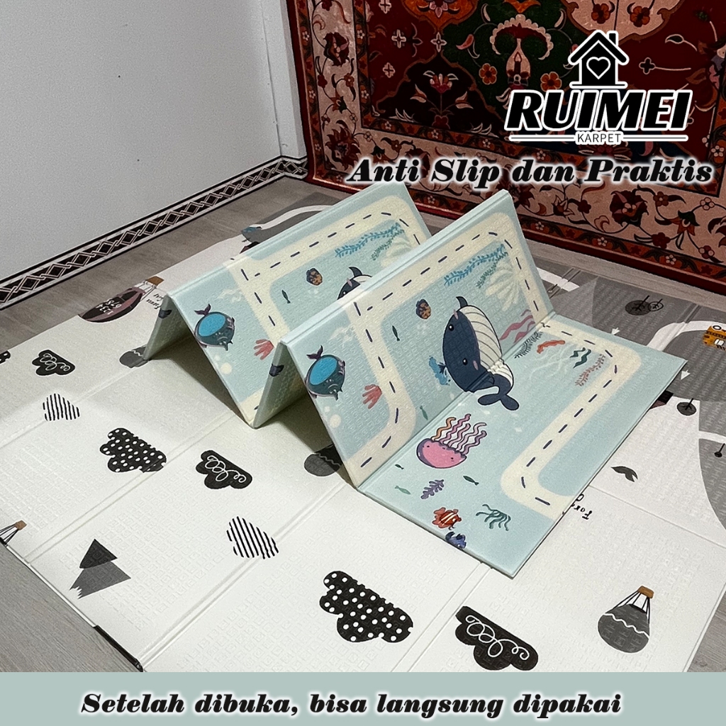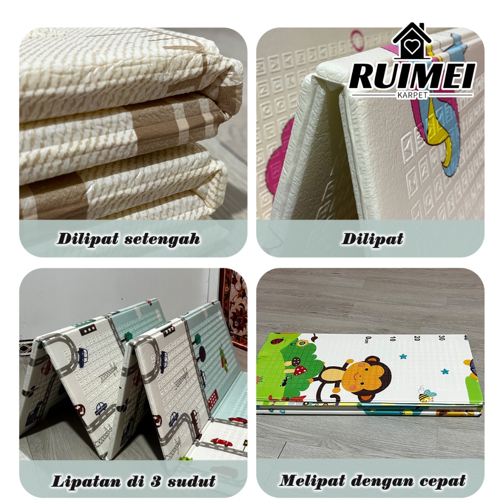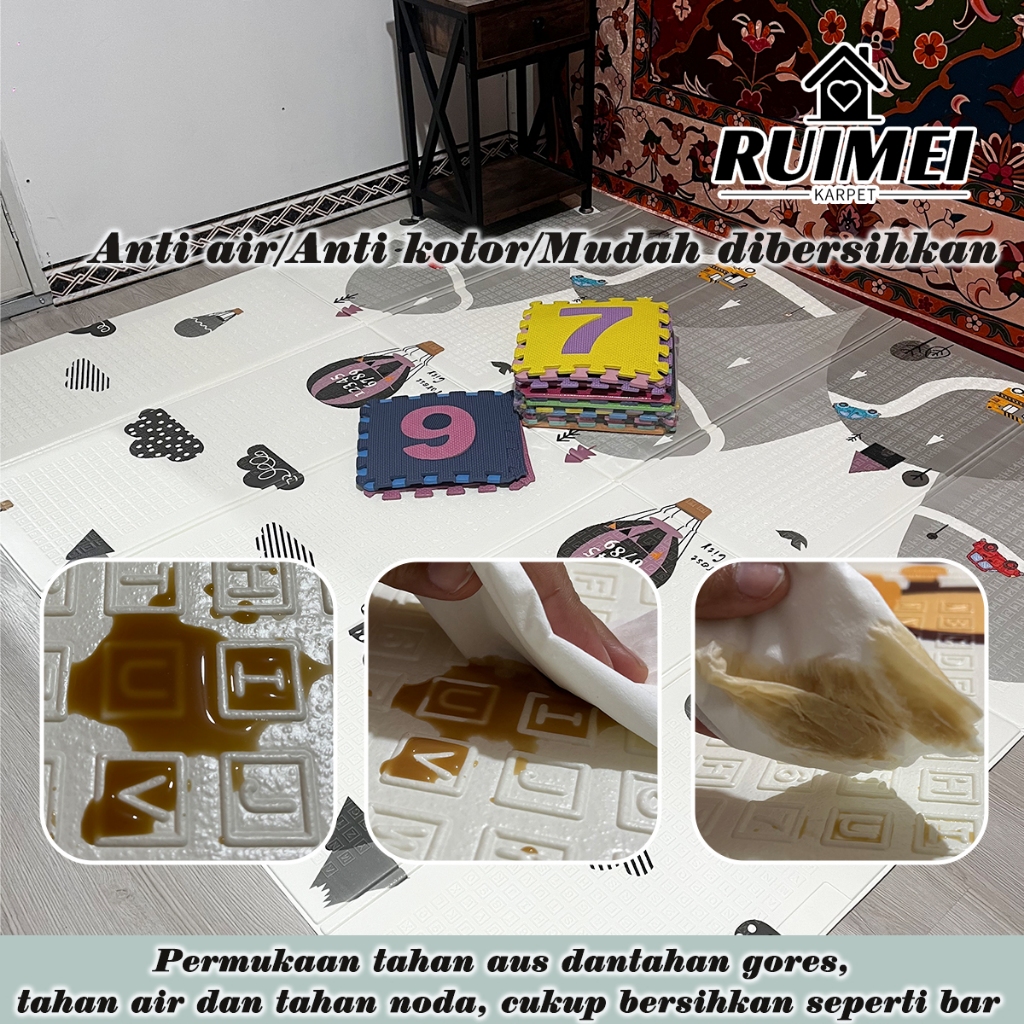 RUIMEI Matras Bayi/Playmat Bayi 180x200 cm Karpet Lipat Anak/Bayi Tikar Lipat Foam Gambar di 2 sisi FREE Tas Playmat