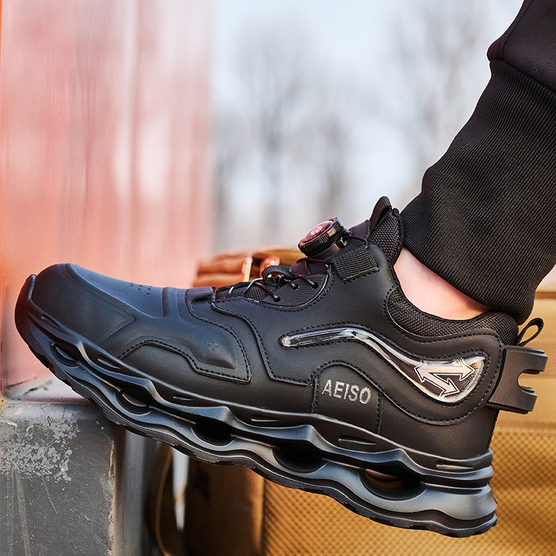 Sepatu Kerja Pria Safety Shoes Aeiso Sport Ujung Besi Casual Hitam Pria Dan Wanita Anti Smashing Stab Black