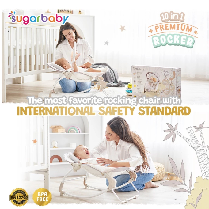 Sugar Baby 10 in 1 Premium Rocker - Ayunan Bayi/Bouncer Bayi/Kursi Goyang Manual Bayi