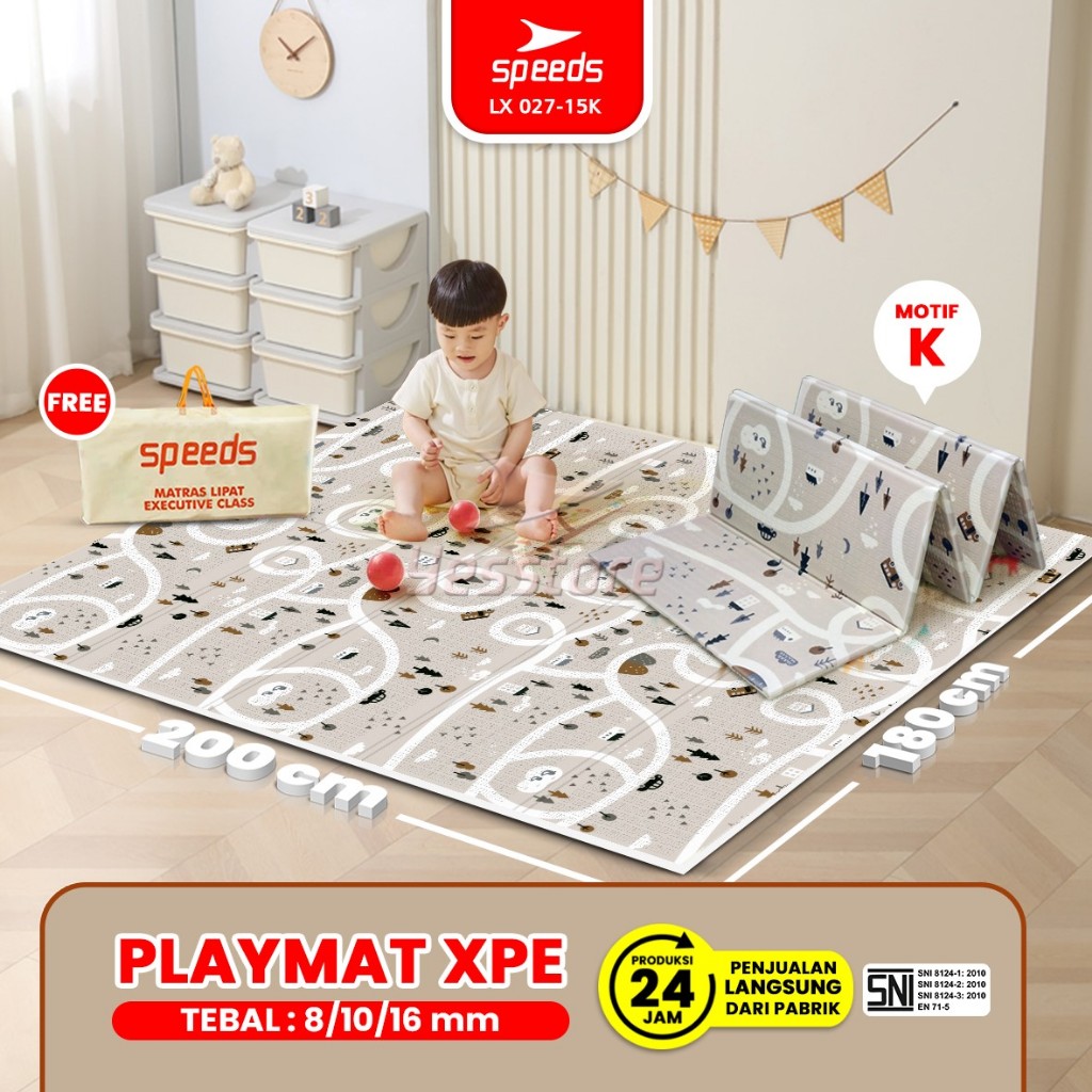 SPEEDS SNI K Playmat Bayi Karpet Lipat Playmate Tikar Lipat Bahan XPE 180x200cm 6-10mm Playmat Foam XPE 027-15