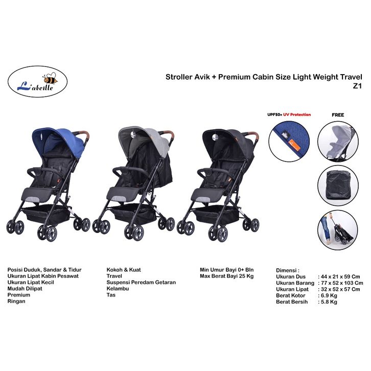 Stroler Labeille Avik+ Premium Cabin Size Upgrade Canopy UPF 50+ UV Protection
