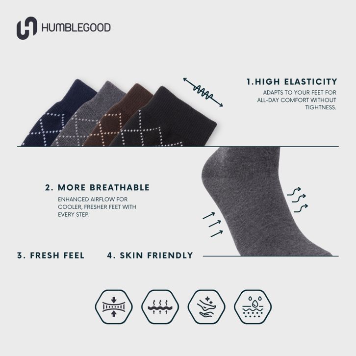 PROMO Kaos Kaki Pria Wanita Dewasa Bola HUMBLEGOOD - Paket Bundling 4 Pasang Kaos Kaki Kantor Crew Oxford Series