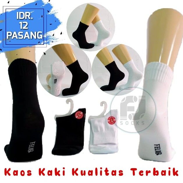 PROMO Kaos Kaki Pria Wanita Dewasa Bola 12 Pasang Kaos Kaki Tebal Bahan Pe/Kaos Kaki Ankle Sport Feliq