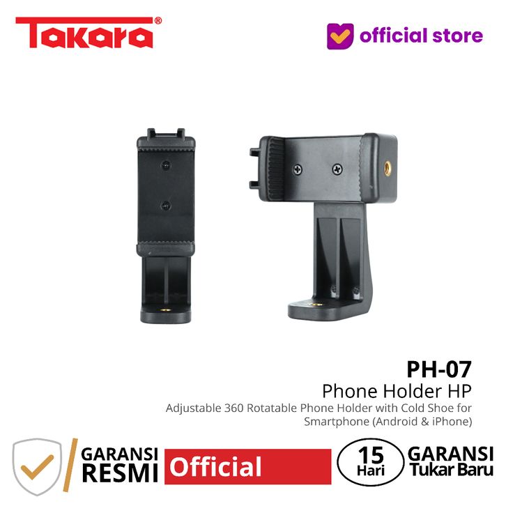 Takara PH-07 Adjustable 360 Rotatable Phone Holder with Cold Shoe for Smartphone Android & iOS iPhone Devices