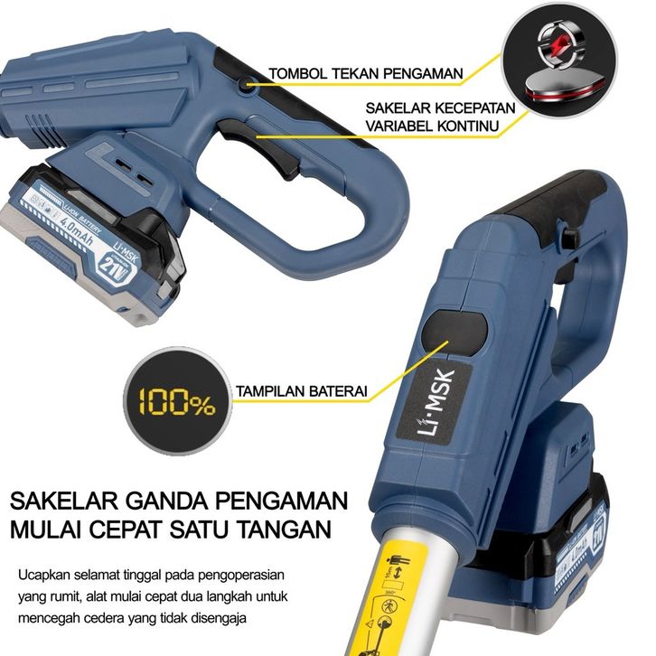 LIMSK Mesin Potong Rumput Baterai Brushless Pemangkas Rumput dengan Baterai Li-ion LI-1060