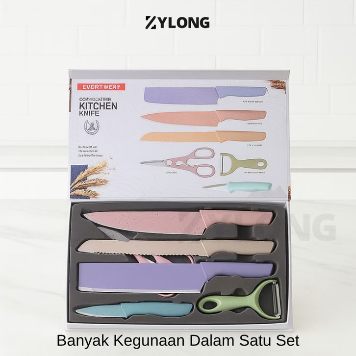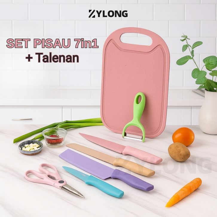 ZYLONG C3 Pisau Dapur 7in1 – Set Tajam dan Ceria untuk Masak Sehari-hari + Talenan Free