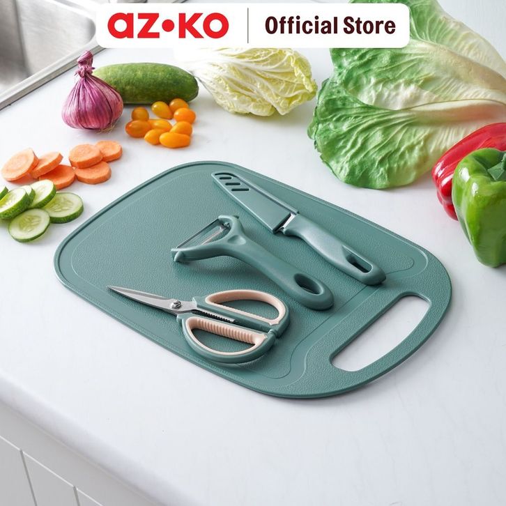 AZKO Kris Set 4 Pcs Pisau Dapur Dengan Talenan - Hijau Knife And Peeler Set Cutting Board Alat Kupas Kulit Buah Dan Say