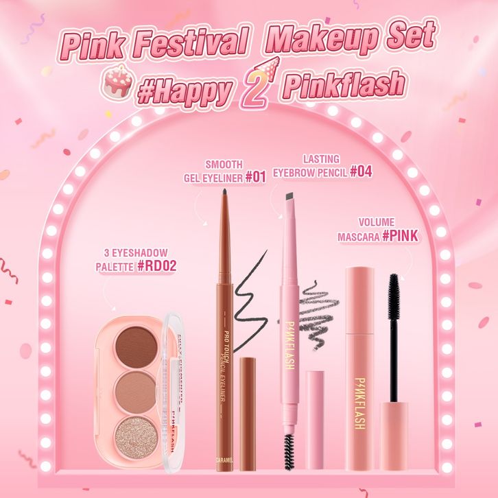 PINKFLASH Beauty Makeup Set 3 shade Eyeshadow+Eyeliner Gel+Maskara+Eyebrow
