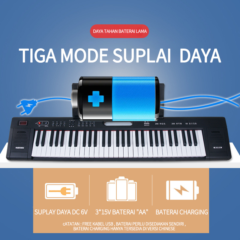 Music- Keyboard Elektrik 61 Tuts ,Keyboard Untuk Pemula , Portabel , Keyboard Elektrik Cerdas , Banyak Nada