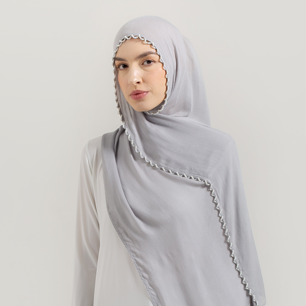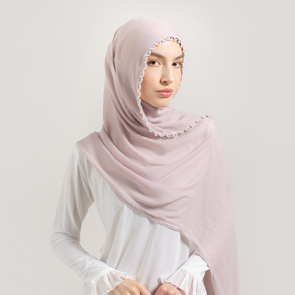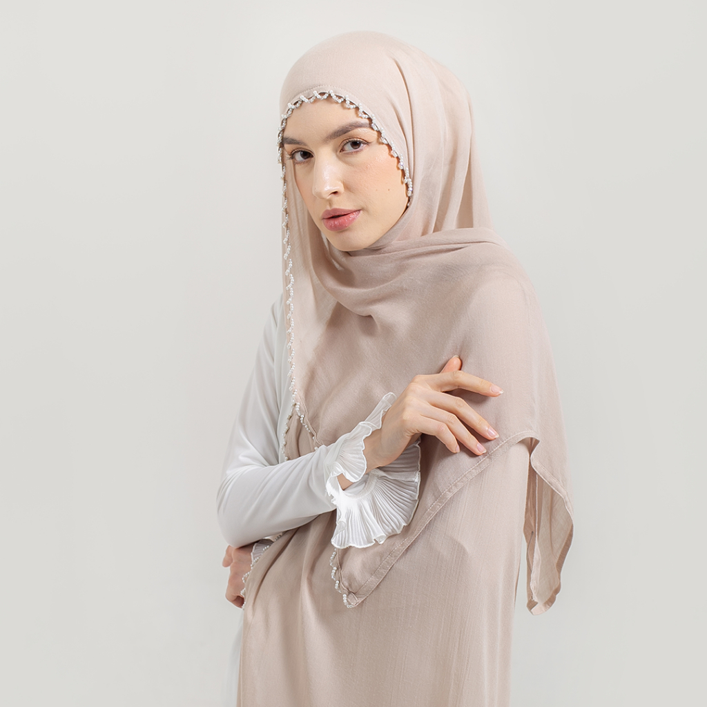 Kilau Series - Pashmina Viscose Payet Pinggir Beads Mutiara Kristal Handmade Premium Beaded Pearl Scarf Hijab Shawl