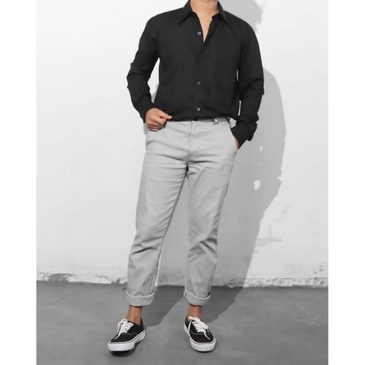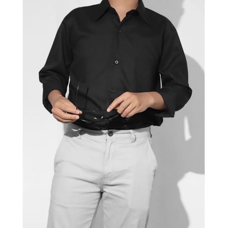 (Gratis Ongkir) Kemeja Polos Pria Lengan Panjang Kasual Formal Cowok | Basic Colour Shirt Pique - Toyobo M L XL