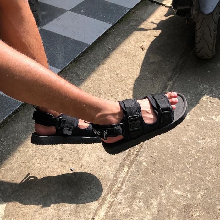 Sandal Gunung Casual Boomboom Pria Wanita Sendal Tali Wanita Korea Unisex 36 - 44 Karet - Full Hitam, 36