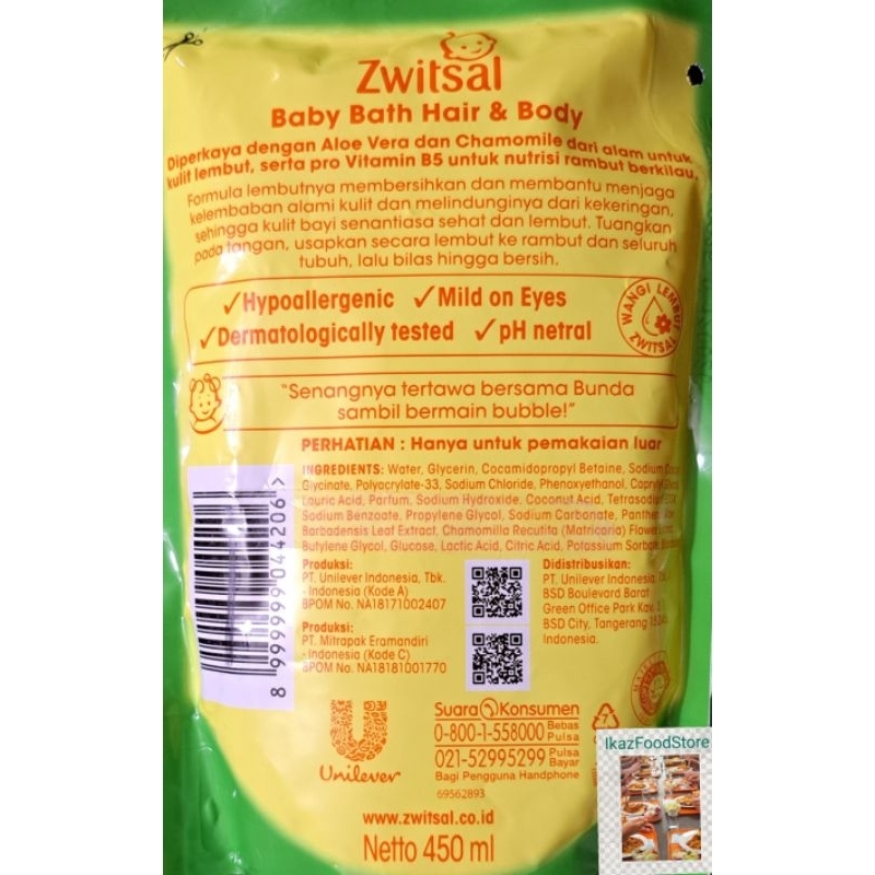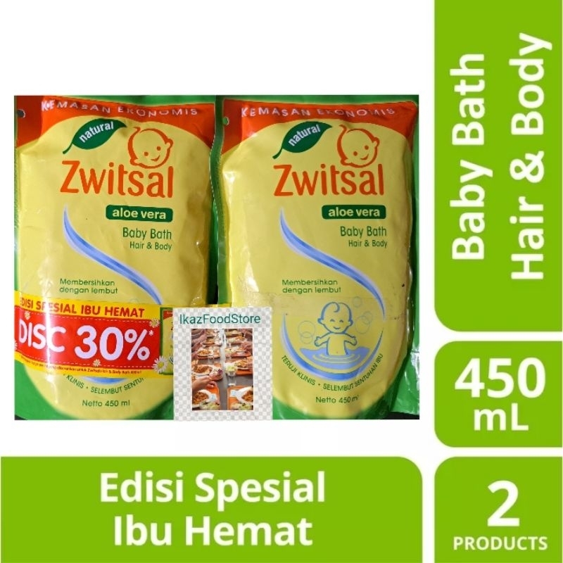 Zwitsal Baby bath Hair & Body 600ml/450ml 400ml Twinpack (Isi 2x400ml) sabun mandi cair dan shampoo bayi/anak