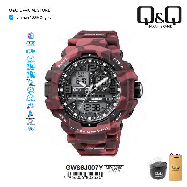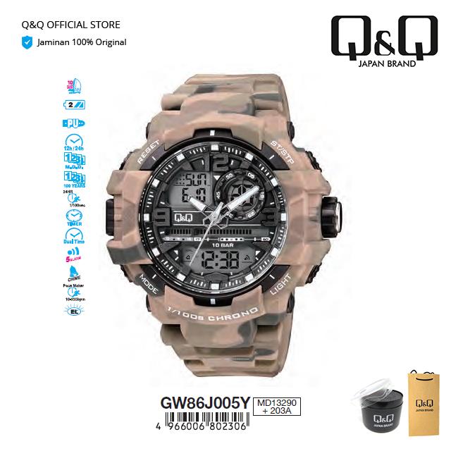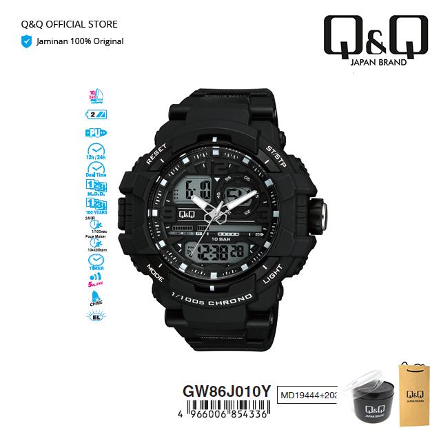 Q&Q Qnq Qq Original Jam Tangan Pria Dual Time -Gw86 Gw86J Rubber