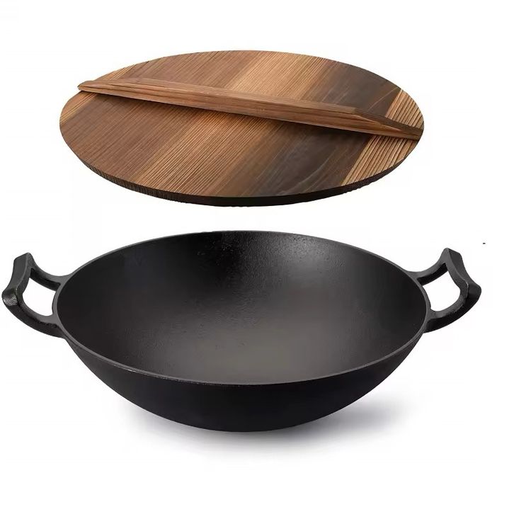 Panci Wajan kuali cast iron Wok 30 cm 12 inch BONUS TUTUP KAYU - BEST SELLER AMAZON