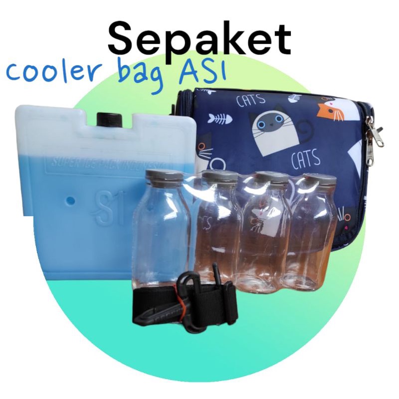 Tas Asi Cooler Bag - SEPAKET - botol asi kaca 100ml+ ice pack gel 500gram jumbo Cooler bag asi termurah berkualitas tinggi