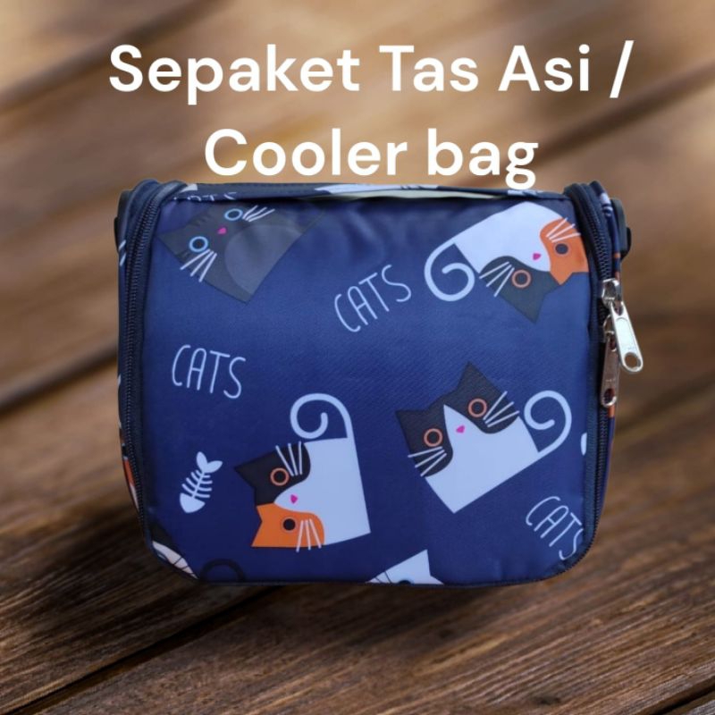 Tas Asi SEPAKET cooler bag asi ( ice gel 500 gram, botol kaca 100ml 4 pcs, tas cooler asi lengkal tali panjang)