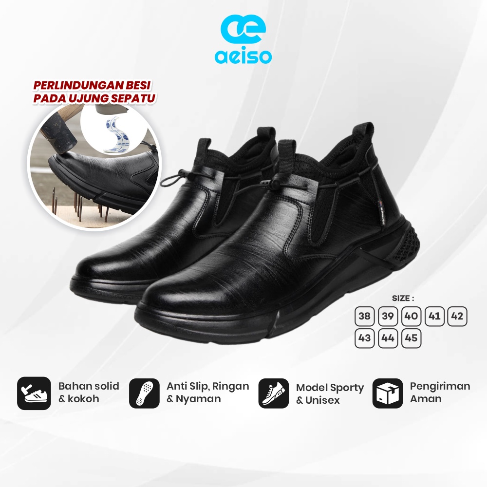 Sepatu Kerja Safety Shoes Waterproof Pria Formal Sporty Antipaku Ujung Besi Safety Boots Aeiso V9 Sepatu Pom Bensin